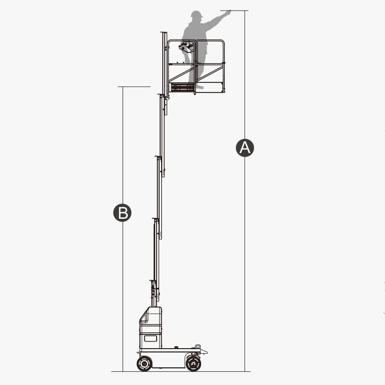 自(zì)行(xíng)走桅柱式高(gāo)δ≤α 空(kōng)作(zuò)業(yè)平台(單桅轉向)